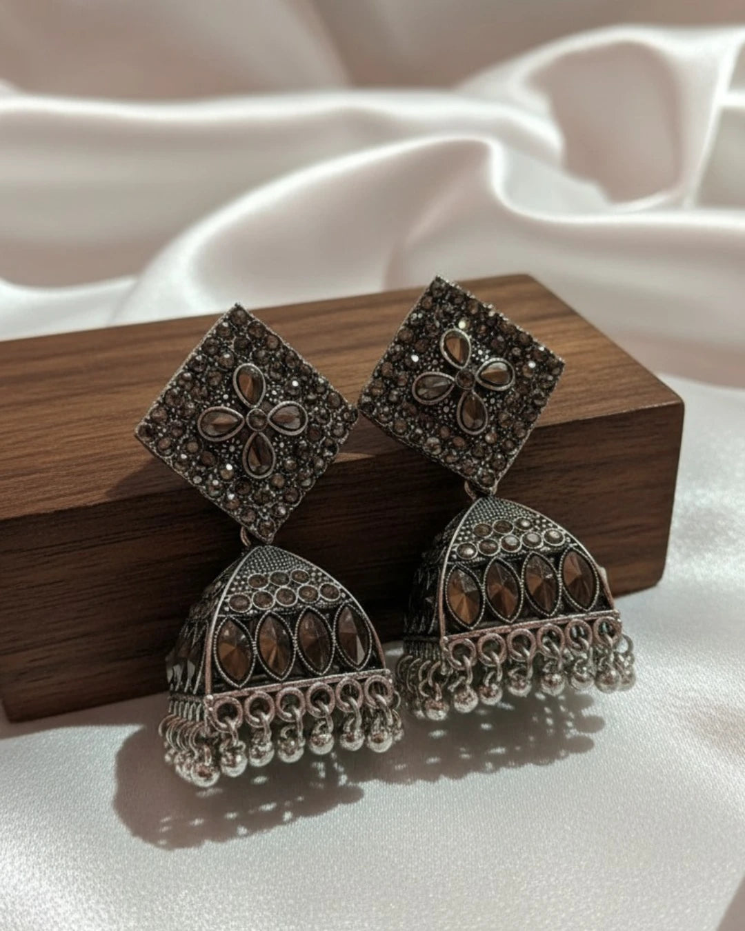 Square Shaped Silver Tone Drop Jhumka